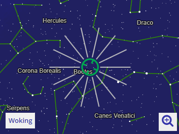The June Bootids reach their peak on the night of the 27th. The radiant (apparent origin point) of the meteors will be in the constellation of Boötes. Meteors will be visible all night, as Boötes is circumpolar and in the sky all night. Best displays will likely be just after sunset, as the radiant is highest in the sky around 22:00 BST.